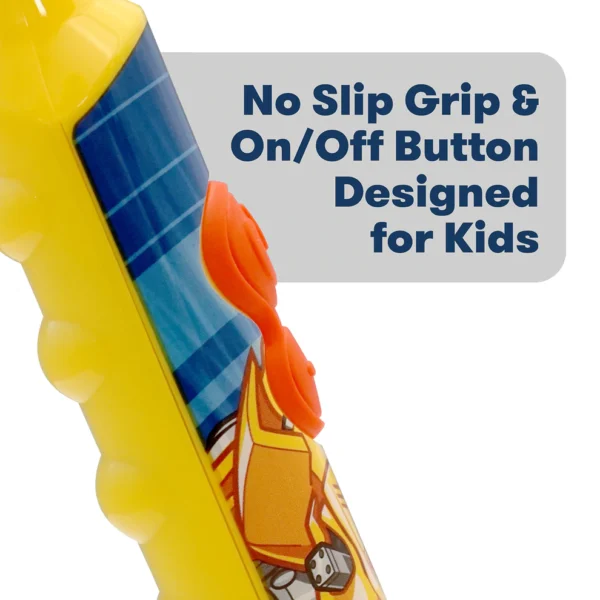 Firefly Transformers kids toothbrush Kenya runs on a replaceable AA battery. You won’t need to recharge it—just swap the battery when needed. The water-resistant design handles splashes and bathroom messes without damage.