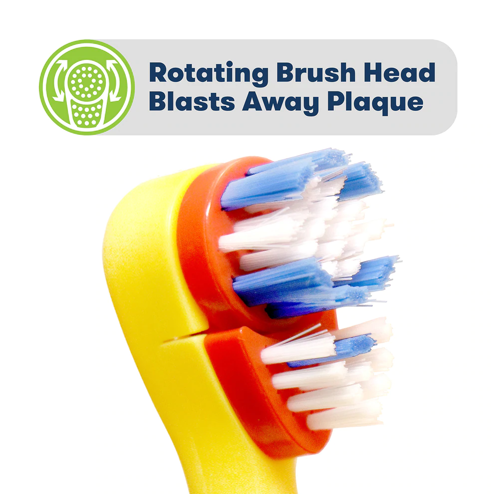 This battery-powered toothbrush delivers gentle oscillating vibrations. Soft bristles clean effectively yet remain gentle on gums. The compact handle fits small hands comfortably. Kids learn proper brushing techniques easily.
